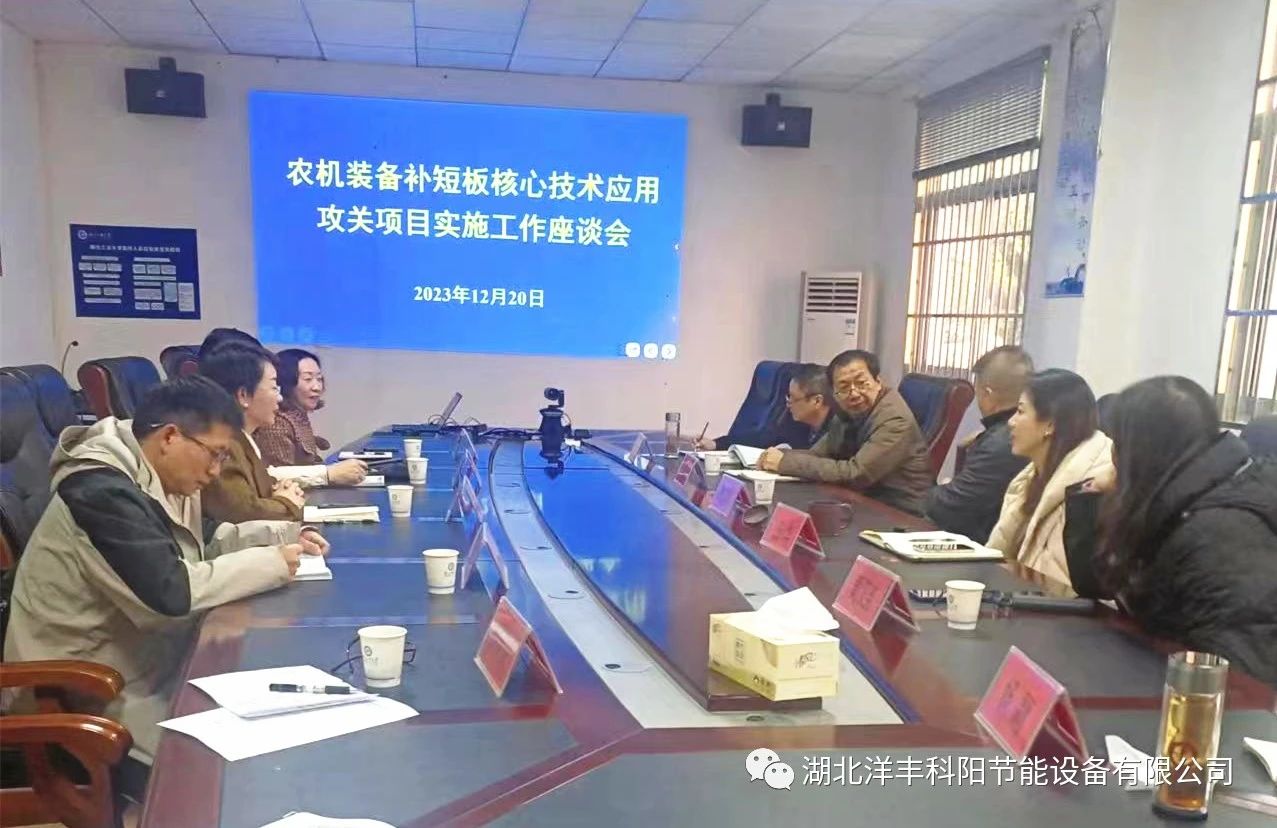 为补齐我省粮食烘干设施装备短板,提升粮食产后处理保障服务水平,切实降低粮食产后灾后损失。12月20日,湖北洋丰科阳节能设备有限公司农机装备补短板核心技术应用攻关项目实施工作座谈会在湖北工业大学召开。省农业农村厅农机化处、省农机鉴定总站、华中农业大学、荆楚理工学院、东宝区农机发展中心、湖北洋丰科阳节能设备有限公司等部门负责人及专家参加会议。