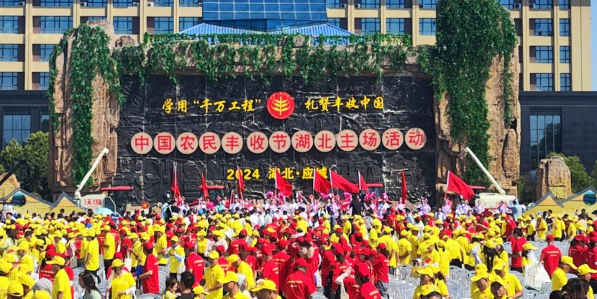 在这个充满希望与喜悦的金秋时节,2024 年中国农民丰收节湖北主场活动于 9 月 22 日在湖北省孝感市应城市城北街道红堂村盛大举行。本次活动由湖北省农业农村厅、中共孝感市委、孝感市人民政府主办,以党的二十届三中全会精神为指引,深入贯彻落实习近平总书记关于做好新时代“三农”工作的重要指示精神,为乡村振兴注入澎湃动能。活动以“糯稻香、产业强、乡村美、文化兴”为主线,通过“丰收庆、丰收展、丰收宴、丰收美、丰收汇、丰收忙、丰收乐”七个精彩板块,全方位展示农业农村现代化发展成果。